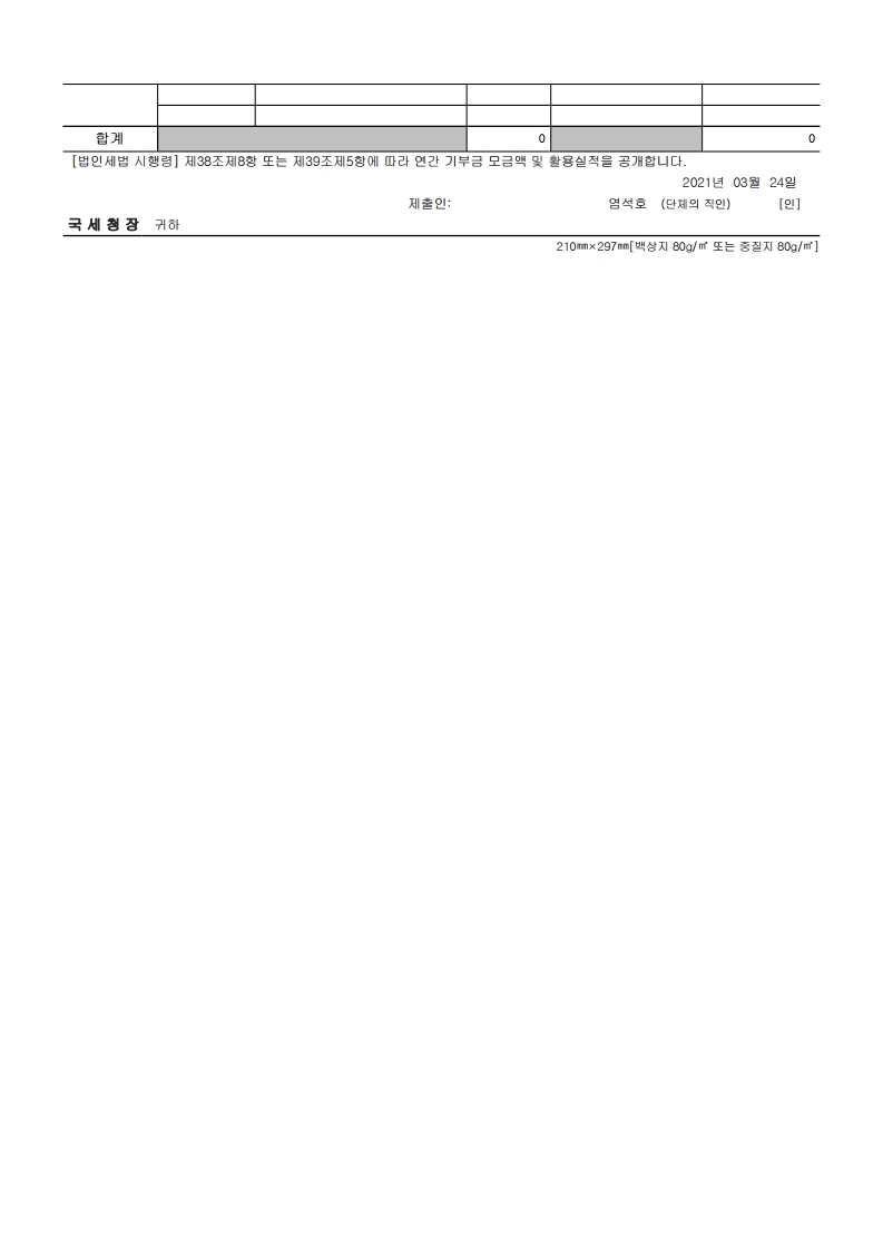 지정기부금단체 의무이행_ 2020년 기부금 모금액 및 활용실적
