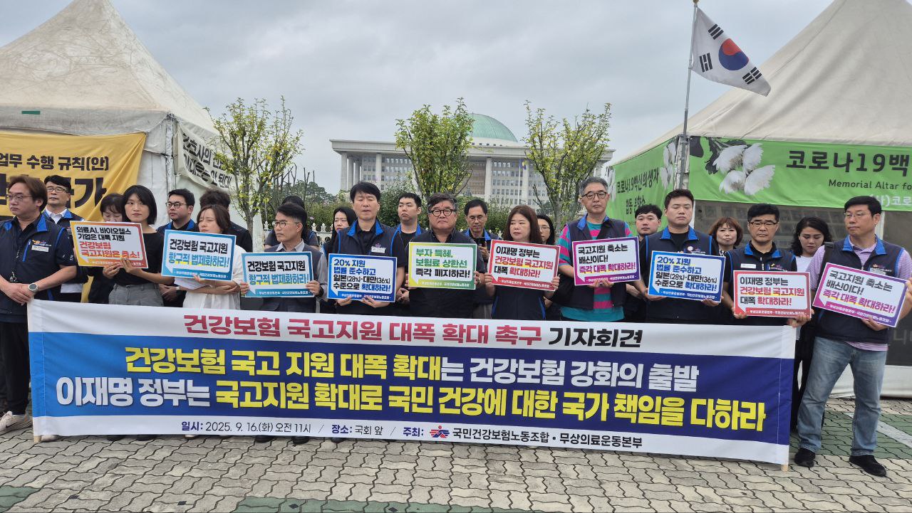 [기자회견] [무상의료운동본부]건강보험 국고 지원 대폭 확대는 건강보험 강화의 출발 이재명 정부는 국고지원 확대로 국민 건강에 대한 국가 책임을 다하라